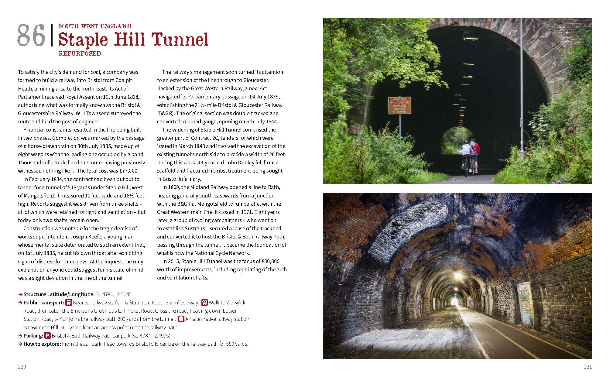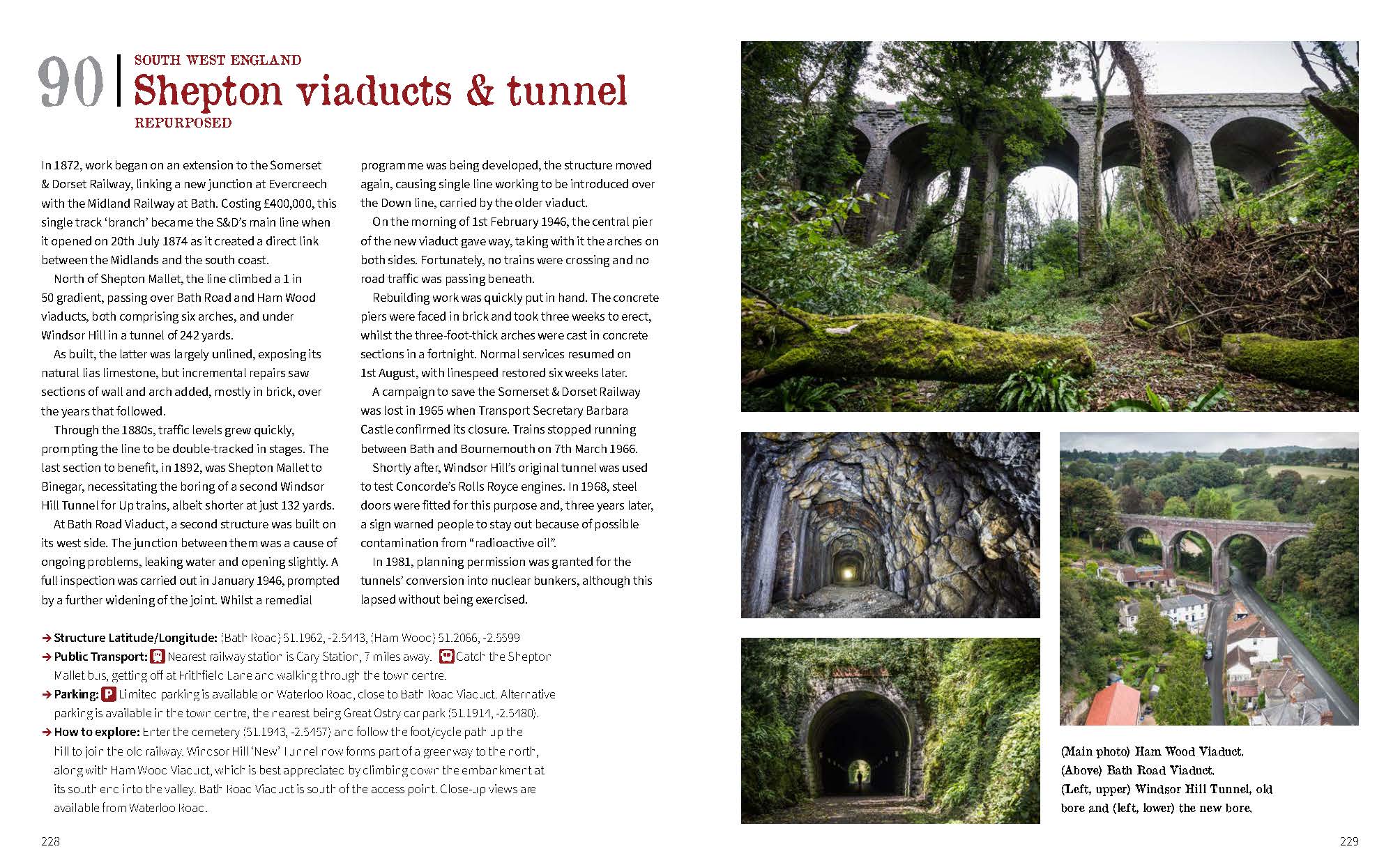 Railway Wonders features a spectacular collection of Britain’s 100 most noteworthy disused railway structures, from historic bridges to moody tunnels and soaring viaducts. Whilst many have been reborn into sustainable transport roles since redundancy claimed them, others await discovery amidst nature’s reclamation of these former industrial corridors.